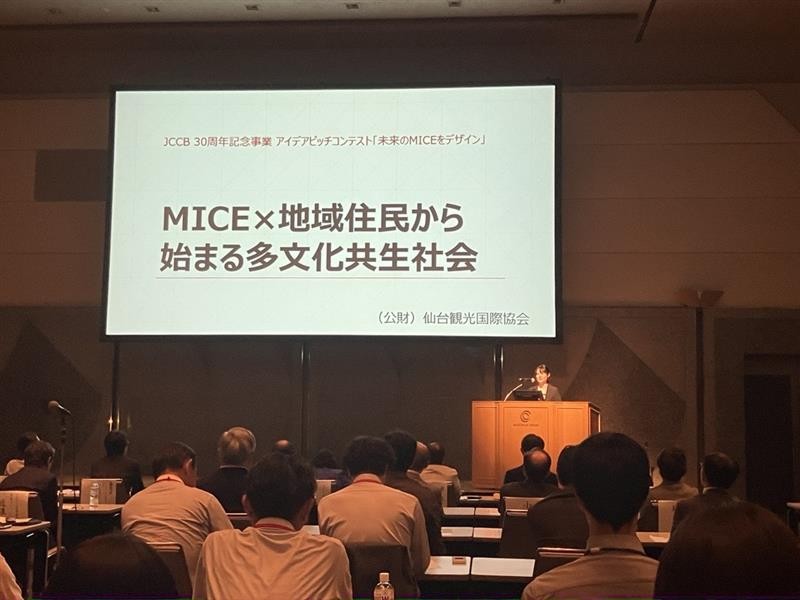 「MICEの未来をデザイン!」と題したアイデアピッチコンテストも行われ、当協会からは「MICE×地域住民から始まる多文化共生社会」というテーマで応募。MICEに地域住民を巻き込むことによって多文化共生社会に貢献するとともに、地域の受入基盤を築きつつ、MICEの課題解決も図ることを提案し、入賞を果たすことができました。