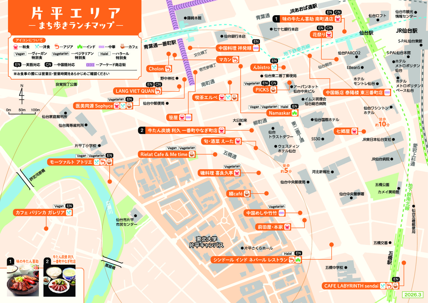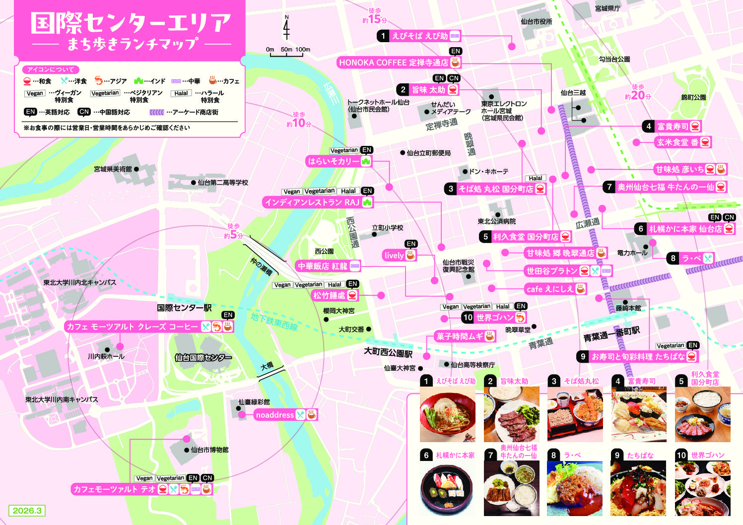 仙台国際センターおよび東北大学片平キャンパス周辺からそれぞれ徒歩圏内にある飲食店をまとめた「仙台ランチマップ」を作成いたしました。